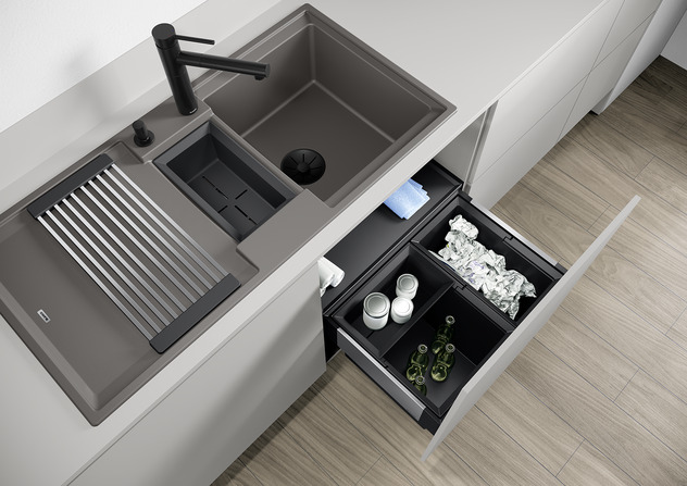 Cutting up beetroot, chopping onions or peeling apples: things sometimes go astray when you're performing kitchen tasks. But your Silgranit sink is perfectly able to cope. Its secret is its fine-pored, unbroken surface, which practically prevents dirt from sticking at all and ensures that water simply rolls away. This protects the sink from limescale deposits and contamination. However, if the odd stain does appear at any point, simply reach for a scouring pad and a little washing-up liquid and water. You’ll have your Silgranit sink clean again in one wipe. In case of stubborn soiling, it’s best to use a professional cleaning agent, such as our BLANCO AKTIV powder.