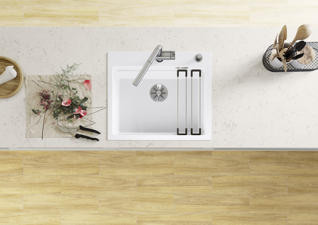 Cutting up beetroot, chopping onions or peeling apples: things sometimes go astray when you're performing kitchen tasks. But your Silgranit sink is perfectly able to cope. Its secret is its fine-pored, unbroken surface, which practically prevents dirt from sticking at all and ensures that water simply rolls away. This protects the sink from limescale deposits and contamination. However, if the odd stain does appear at any point, simply reach for a scouring pad and a little washing-up liquid and water. You’ll have your Silgranit sink clean again in one wipe. In case of stubborn soiling, it’s best to use a professional cleaning agent, such as our BLANCO AKTIV powder.