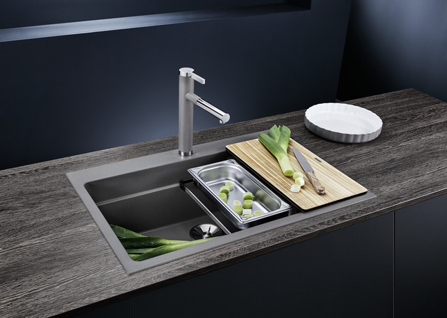Cutting up beetroot, chopping onions or peeling apples: things sometimes go astray when you're performing kitchen tasks. But your Silgranit sink is perfectly able to cope. Its secret is its fine-pored, unbroken surface, which practically prevents dirt from sticking at all and ensures that water simply rolls away. This protects the sink from limescale deposits and contamination. However, if the odd stain does appear at any point, simply reach for a scouring pad and a little washing-up liquid and water. You’ll have your Silgranit sink clean again in one wipe. In case of stubborn soiling, it’s best to use a professional cleaning agent, such as our BLANCO AKTIV powder.