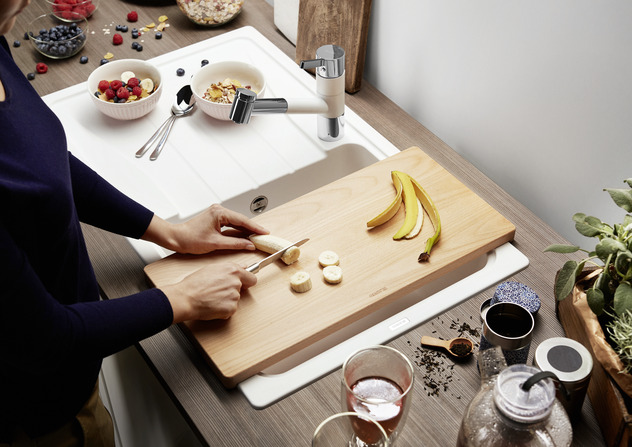 Cutting up beetroot, chopping onions or peeling apples: things sometimes go astray when you're performing kitchen tasks. But your Silgranit sink is perfectly able to cope. Its secret is its fine-pored, unbroken surface, which practically prevents dirt from sticking at all and ensures that water simply rolls away. This protects the sink from limescale deposits and contamination. However, if the odd stain does appear at any point, simply reach for a scouring pad and a little washing-up liquid and water. You’ll have your Silgranit sink clean again in one wipe. In case of stubborn soiling, it’s best to use a professional cleaning agent, such as our BLANCO AKTIV powder.