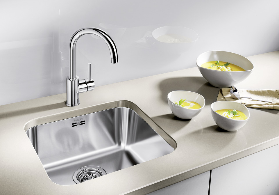 Such radiant shine requires a little TLC. It doesn’t take much effort, but it needs to be done frequently. So if you want to avoid little marks on your stainless steel sink, rub it dry after each use. You don’t need to scrub it vigorously. After rinsing, simply wipe it with a soft cloth and a mild cleaner, then dry it – all done! If you do spot an unwanted mark, use a descaling cleaning agent specially designed for stainless steel. Together with a suitable stainless steel cleaning sponge, the surface will be so spotlessly clean that you’ll wonder where those marks went so quickly.