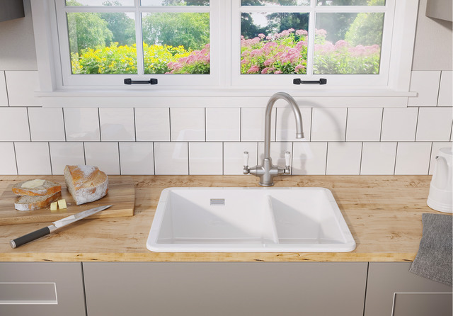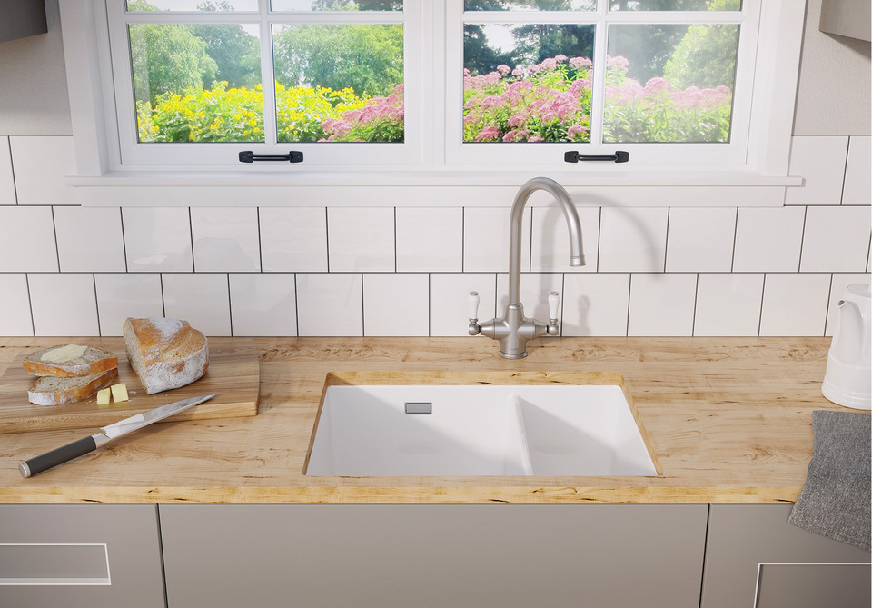 When vegetables, meat and fruit have all done their worst on the ceramic sink, you’d expect to be faced with something of a disaster. But you don’t need to worry about all that with your ceramic sink. The smooth and completely unbroken surface ensures that no dirt can settle on it. What’s more, any soiling that is visible after long cooking sessions is easy to tackle. Just get a soft sponge, a little washing-up liquid and warm water, and wipe it away. A microfibre cloth is best for rubbing it dry. However, steer clear of scouring agents, steel brushes and aggressive mixer tap cleaners containing chlorine. Your ceramic sink won’t like these at all.