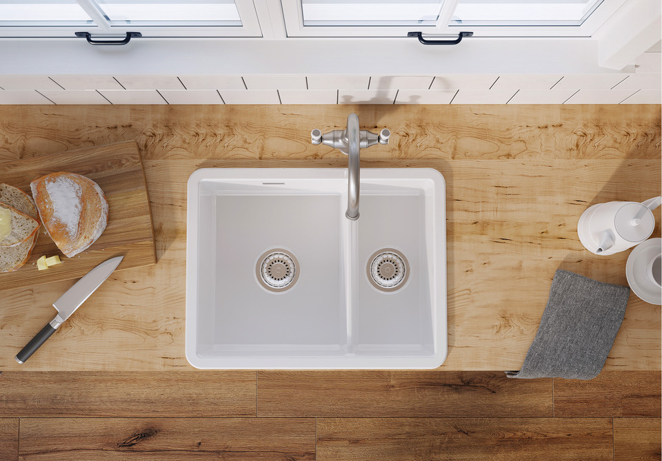 Not only are our ceramic sinks ideal for day-to-day washing up, but they also provide a space to chop up tomatoes, meat and garlic. The material makes it ideal as a place for food. The smooth, non-porous surface prevents food remains from getting stuck. Light soiling caused by cutting, frying or cooking on nearby utensils is easily remedied. It can be eliminated even faster than it appeared with a soft sponge, a little washing-up liquid and warm water. This means no unpleasant smells or unsightly discolouration on your sink.