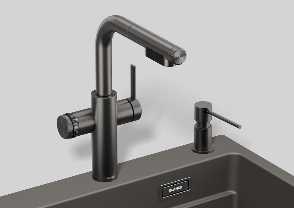 - Pull-out, extendable tap head with jet spray option for regular water for rinsing fruit and vegetables