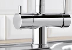 Generally speaking, our mixer taps are easy-care and hygienic. This is thanks to their smooth surface, which allows hardly any dirt to settle on it. However, mixer taps do benefit from regularly cleaning. It doesn’t take much effort, but it needs to be done frequently. Take a mild cleaning agent and go over the mixer taps a few times with the soft side of a sponge. Now rub them dry with a microfibre cloth, and you’ll see that your mixer taps are back to being a stand-out feature of your kitchen once again, in just a few simple steps.