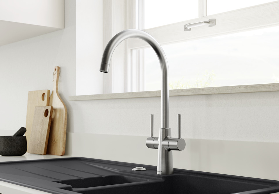 Generally speaking, our mixer taps are easy-care and hygienic. This is thanks to their smooth surface, which allows hardly any dirt to settle on it. However, mixer taps do benefit from regularly cleaning. It doesn’t take much effort, but it needs to be done frequently. Take a mild cleaning agent and go over the mixer taps a few times with the soft side of a sponge. Now rub them dry with a microfibre cloth, and you’ll see that your mixer taps are back to being a stand-out feature of your kitchen once again, in just a few simple steps.